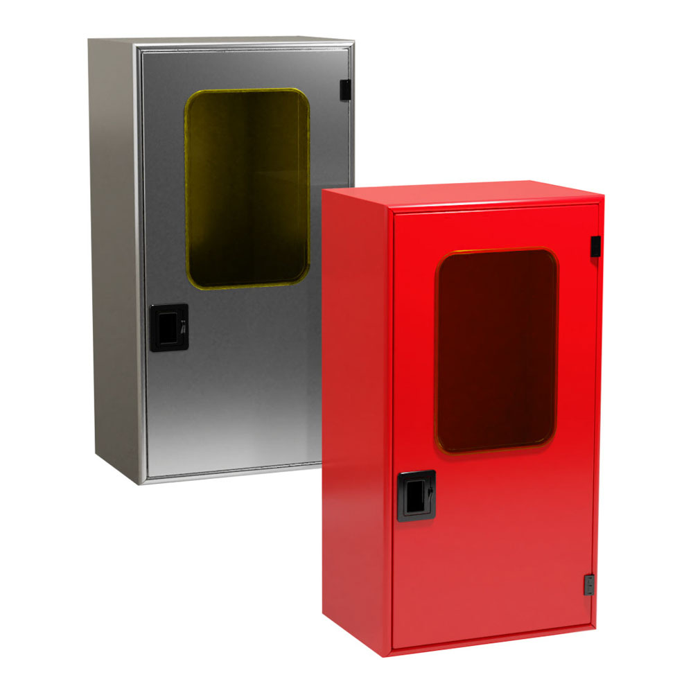Cassetta porta-estintore “Linea Murano Oblò” con portello sigillabile e oblò di ispezione.