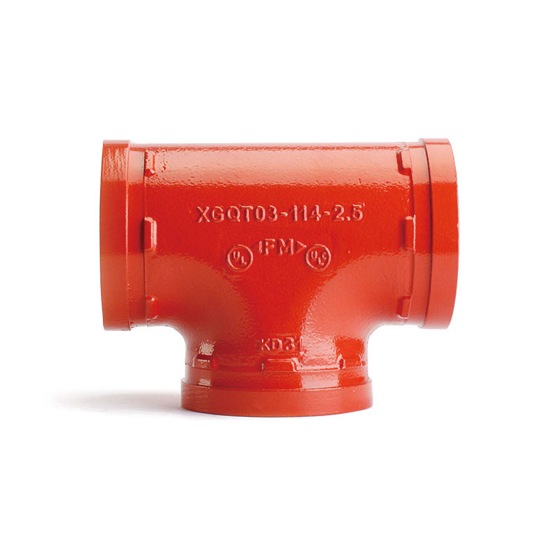 TEE scanalato omologato UL/FM, verniciato rosso. A corto raggio, per installazioni antincendio e termoidrauliche. Pressione max 21 bar