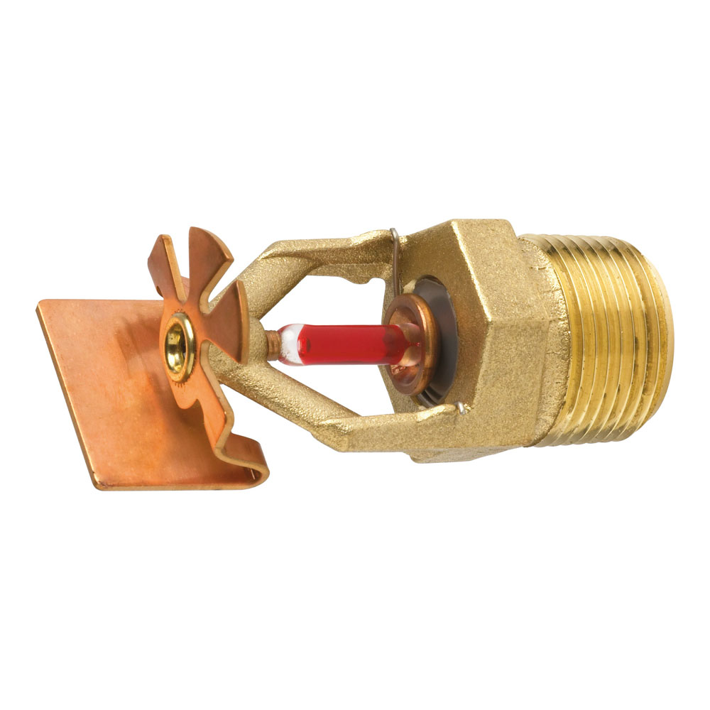 Sprinkler Sidewall 1/2” risposta standard approvato CE UL/FM, attacco 1/2” NPT, fattore K=80. Per installazione orizzontale a parete in impianti a umido – pressione max di lavoro 12 bar. Finitura in ottone naturale