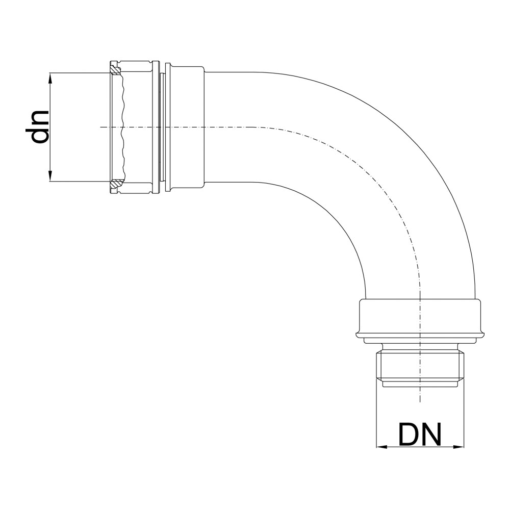 Raccordo a gomito In ottone a norma EN, attacco filettato femmina girello UNI 804, uscita maschio UNI 810.
